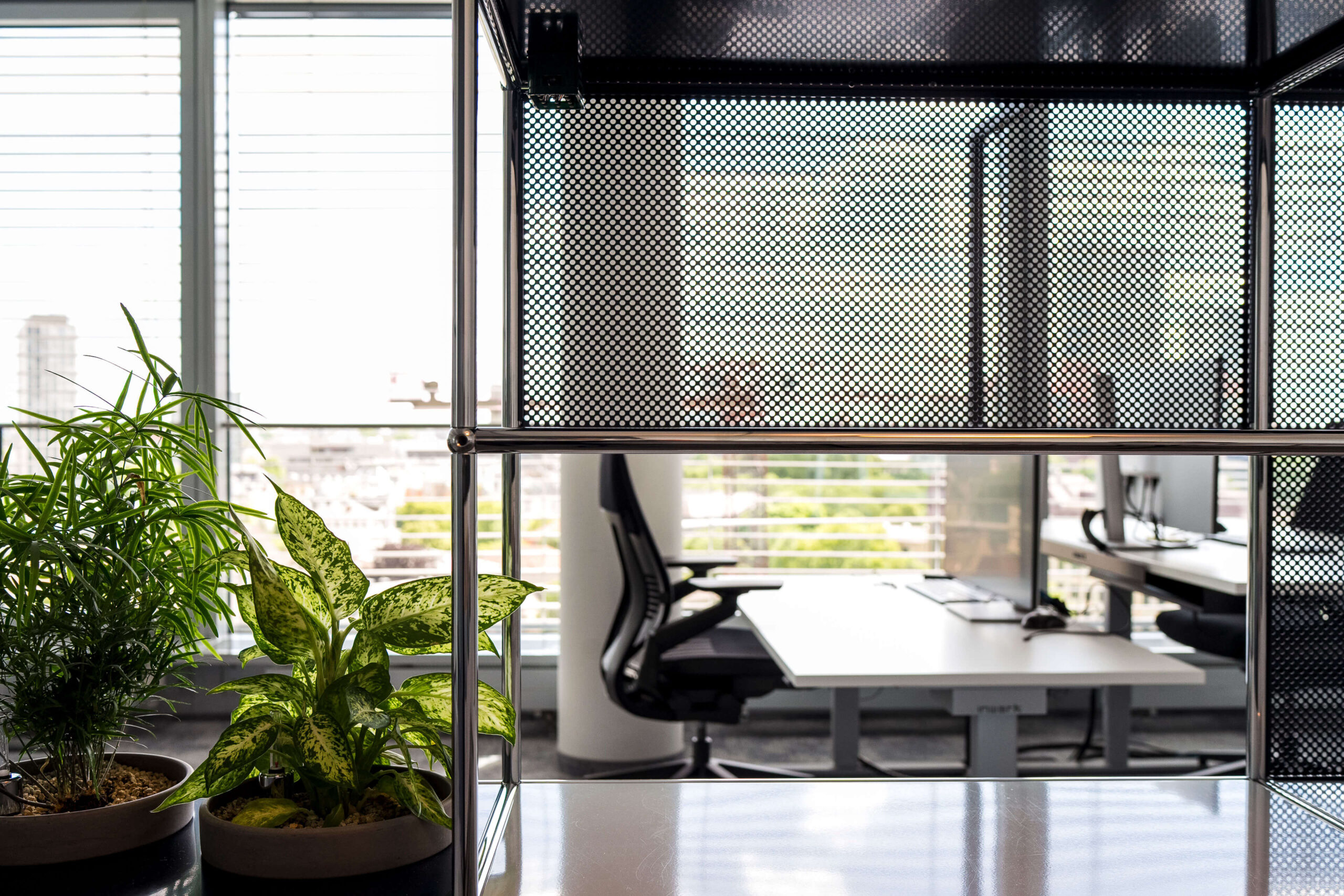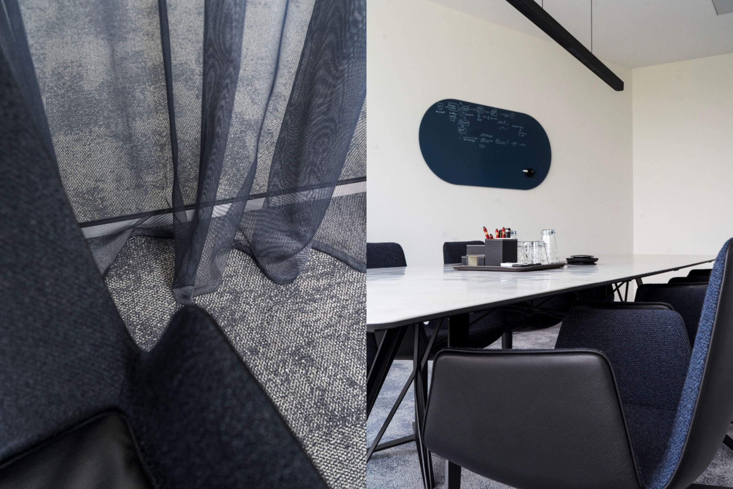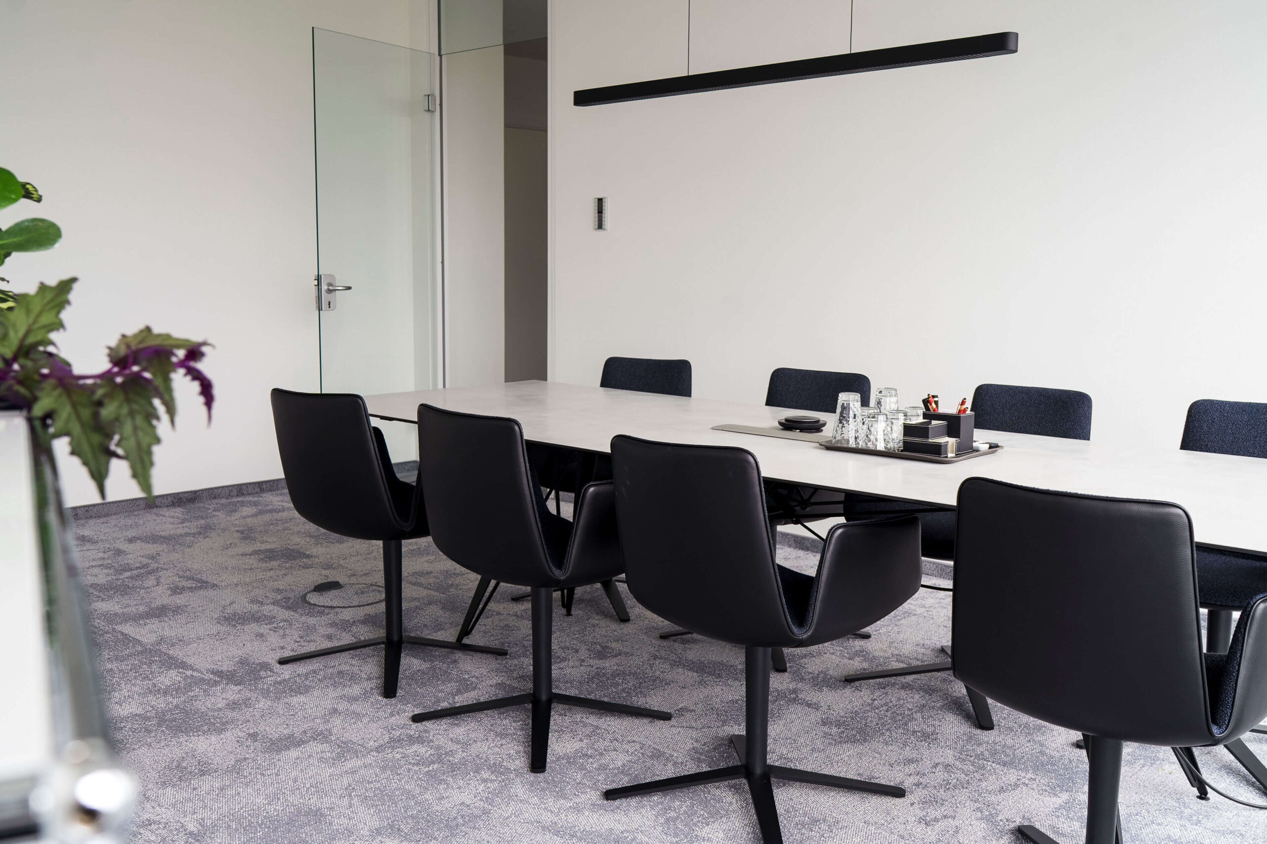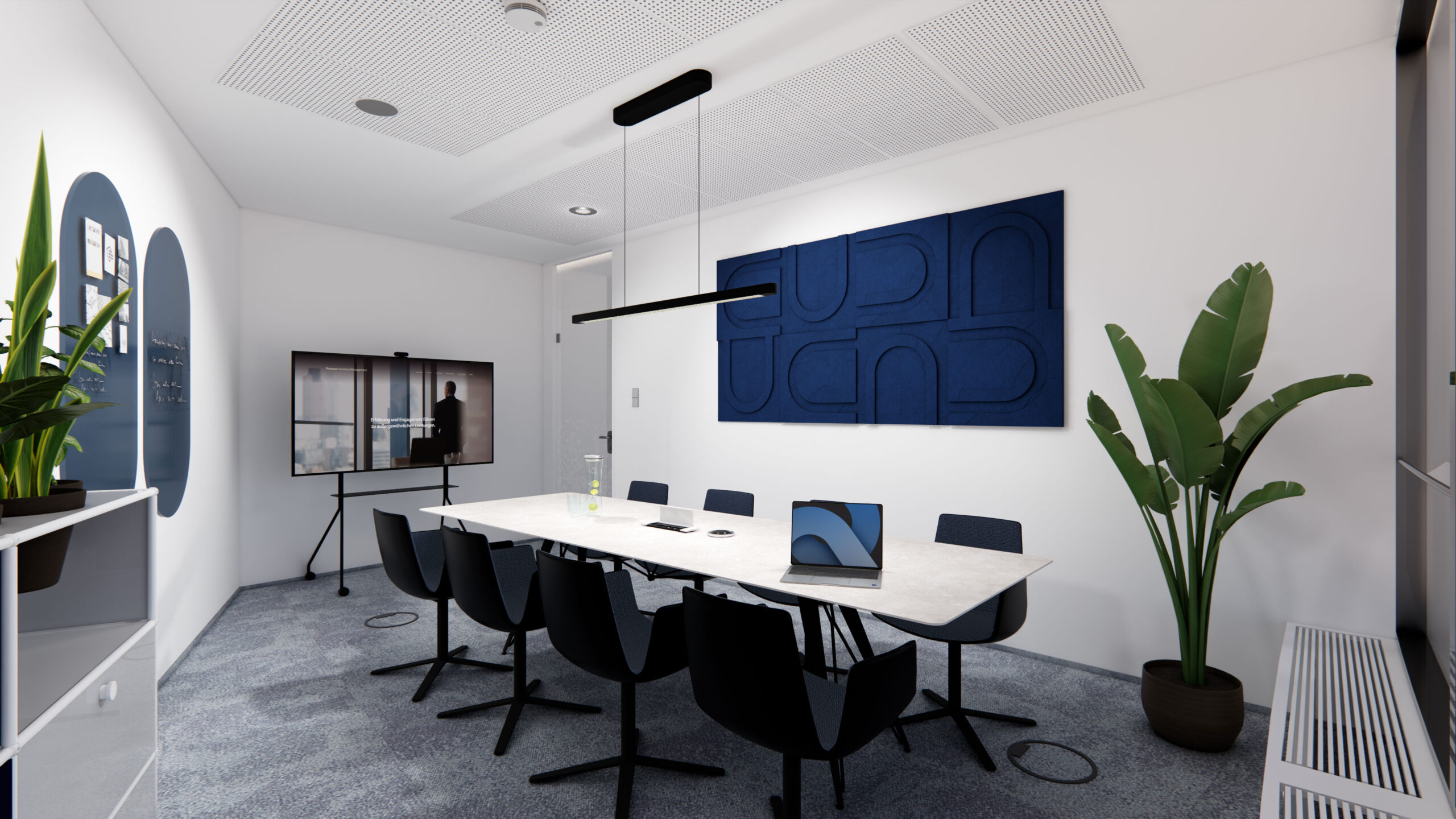 Eine moderne Ort für klare Gedanken: Die Gestaltung der Unternehmensberatung vereint Funktionalität mit modernem Interior Design und fördert Effizienz und Atmosphäre gleichermaßen. Klarheit und Struktur stehen im Mittelpunkt: Geometrische Muster, kühle Farbkombinationen und Chromoberflächen verkörpern Professionalität und Präzision – perfekt abgestimmt auf die Corporate Identity der Kanzlei. Gleichzeitig setzen harmonisch integrierte Pflanzen grüne Akzente, die den Räumen eine angenehme, einladende Atmosphäre verleihen. Das Design schafft eine Umgebung, in der sich Mitarbeiter und Mandanten gleichermaßen wohlfühlen.